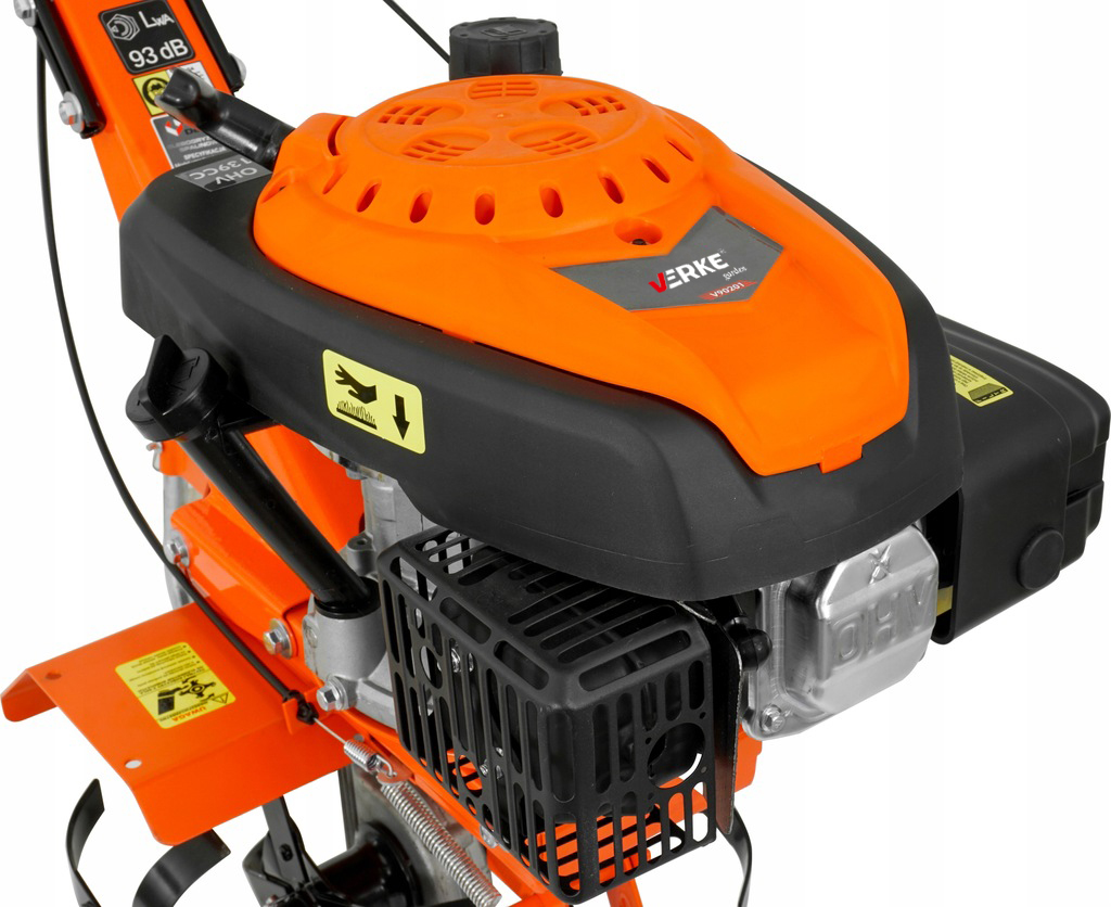 VERKE to spalinowa glebogryzarka napędzana 4-suwowym silnikiem do prac przydomowych. Doskonale nadaje się do pielenia dużych połaci pola i rozdrabniania gleby o dużych bryłach. Dzięki dużej mocy silnika spalinowego, stalowe noże samoczynnie wgryzają się w glebę. Jest niezwykle pomocna przy wprowadzaniu nawozu, torfu i kompostu. Idealne urządzenie do przydomowych ogródków i działek.
