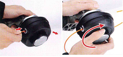Głowica wyposażona w system łatwego nawijania żyłki bez konieczności rozbierania korpusu – wystarczy przewlec żyłkę i nawinąć poprzez przekręcenie zewnętrznego pokrętła.
