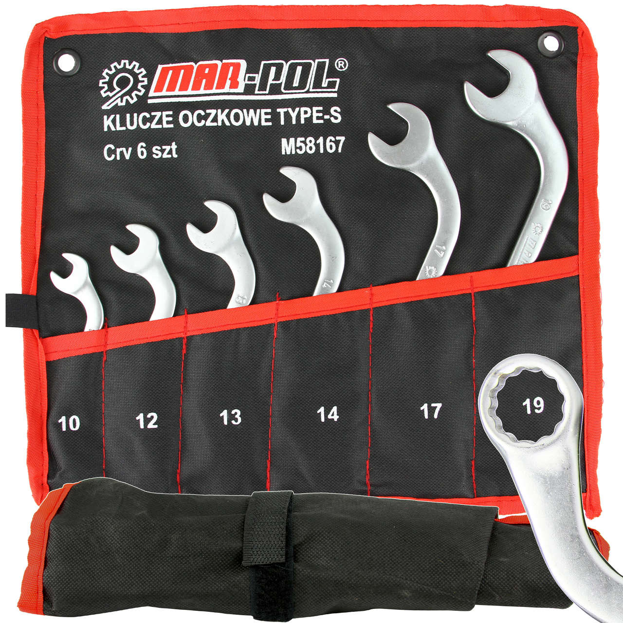 Zestaw kluczy oczkowych wygiętych, dzięki specjalnemu profilowi w kształcie litery S umożliwia odkręcanie śrub w miejscach niedostępnych dla innych narzędzi. Specyficzny kształt klucza ułatwia odkręcanie kolektorów, alternatorów i rozruszników samochodowych Wysokogatunkowa stal chromowo-wanadowa zapewnia długoletnią wytrzymałość kluczy. Zestaw zapakowany w poręcznym etui.