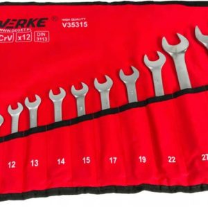 Bardzo wysokiej jakości klucze płasko-oczkowe wykonane ze stali chromo-wanadowej. Przeznaczone do pracy zarówno w warunkach domowych jak i w profesjonalnym warsztacie. Spełniają normy DIN 3113. Klucze mają estetyczne polerowane wykończenie. Całość zapakowana została w wygodne zwijanie etui, dzięki czemu zajmuje mało miejsca. Pokrowiec wykonany jest z bardzo mocnego i wytrzymałego materiału, a otwory w jego górnych rogach umożliwiają powieszenie ich na ścianie.