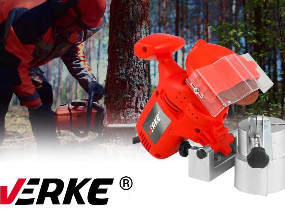 Ostrzałka do łańcuchów VERKE to mocne i niezawodne urządzenie przeznaczone do ostrzenia łańcuchów pił spalinowych i elektrycznych. Specjalna budowa ostrzałki umożliwia naostrzenie każdego zęba łańcucha w ten sam, powtarzalny sposób. Ostrzałka ta posiada wydajny silnik o mocy 220 W, tarczę o średnicy 100 mm oraz obracane imadło z regulowanym kątem ostrzenia, umożliwiające łatwe i skuteczne ostrzenie łańcuchów.