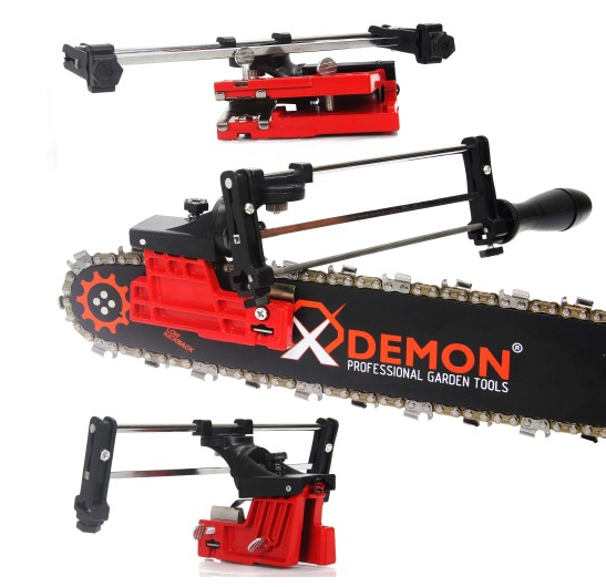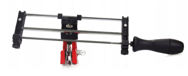 Ostrzenie łańcucha odbywa się bez jego ściągania. Ostrzałka mocowana jest bezpośrednio na prowadnicy.