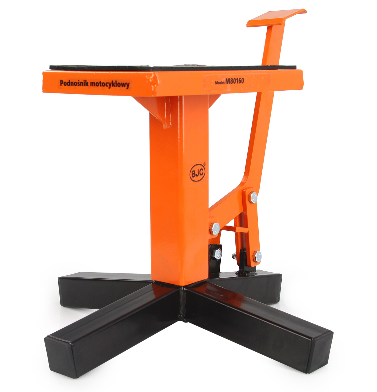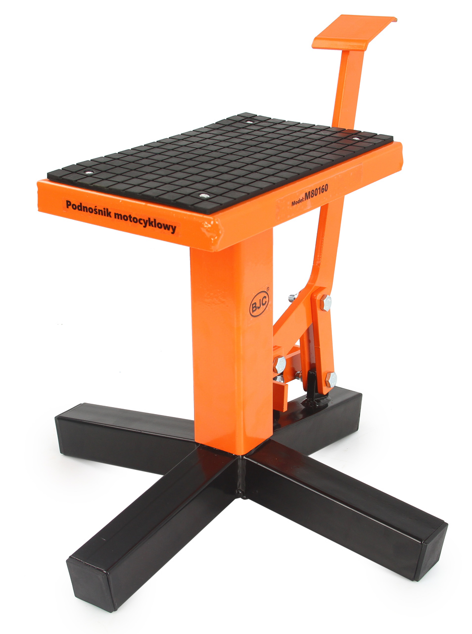 - urządzenie wyposażone w praktyczny pedał nożny, który pozwala na podniesienie motocykla bez dużych nakładów sił.