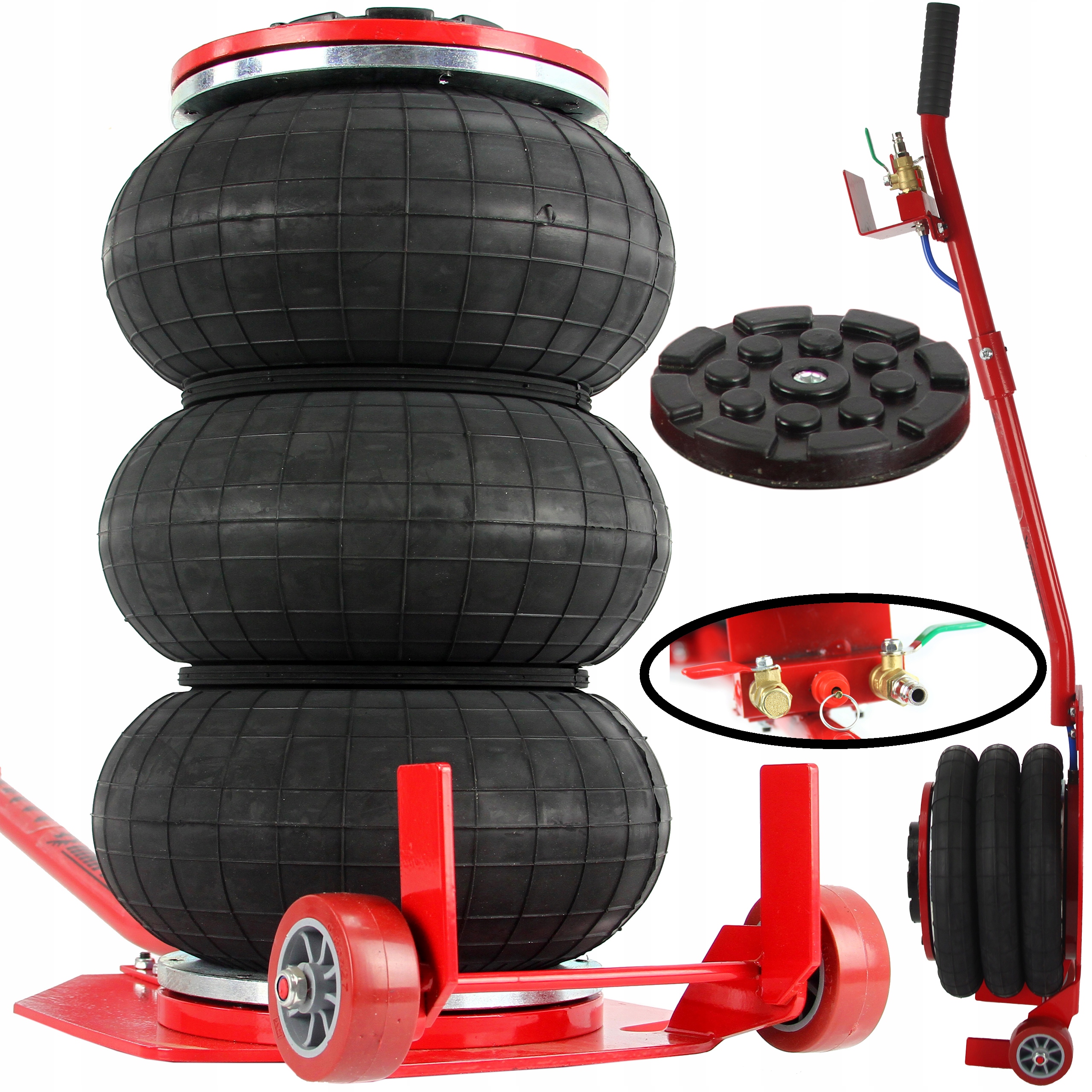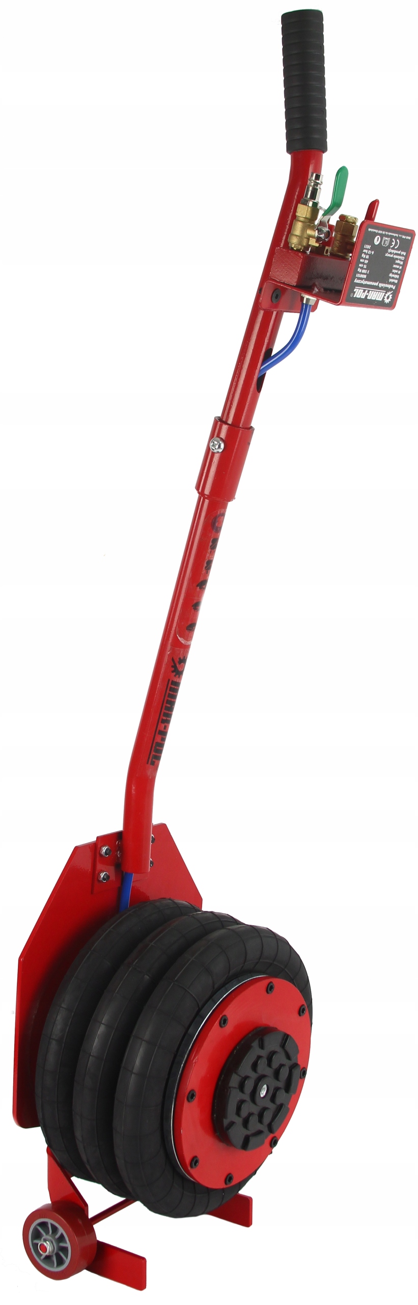 Warsztatowy podnośnik pneumatyczny 3,5T typu bałwanek, wykonany z bardzo wysokiej jakości materiałów. Podnośnik pneumatyczny jest przeznaczony do prac w których wymagane jest podnoszenie dużych ciężarów. Podnośnik przeznaczony jest do pracy w warsztatach samochodowych, wulkanizacjach, gospodarstwach rolniczych i miejscach gdzie występuje potrzeba podnoszenia urządzeń i maszyn.