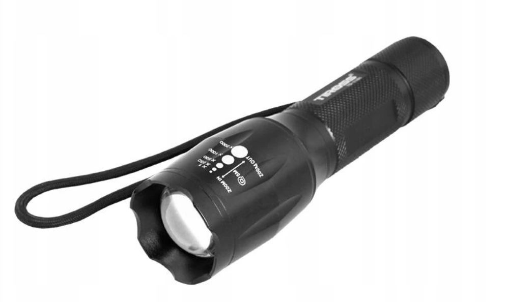 Latarka ręczna stworzona w oparciu o jedną wysokosprawną diodę typu CREE XM-L2 T6. Latarka posiada funkcję zoom, stroboskop, SOS, i trzy stopnie natężenia światła. Wyposażona w akumulator ładowany z sieci 230 V, jednocześnie z możliwością używania baterii.