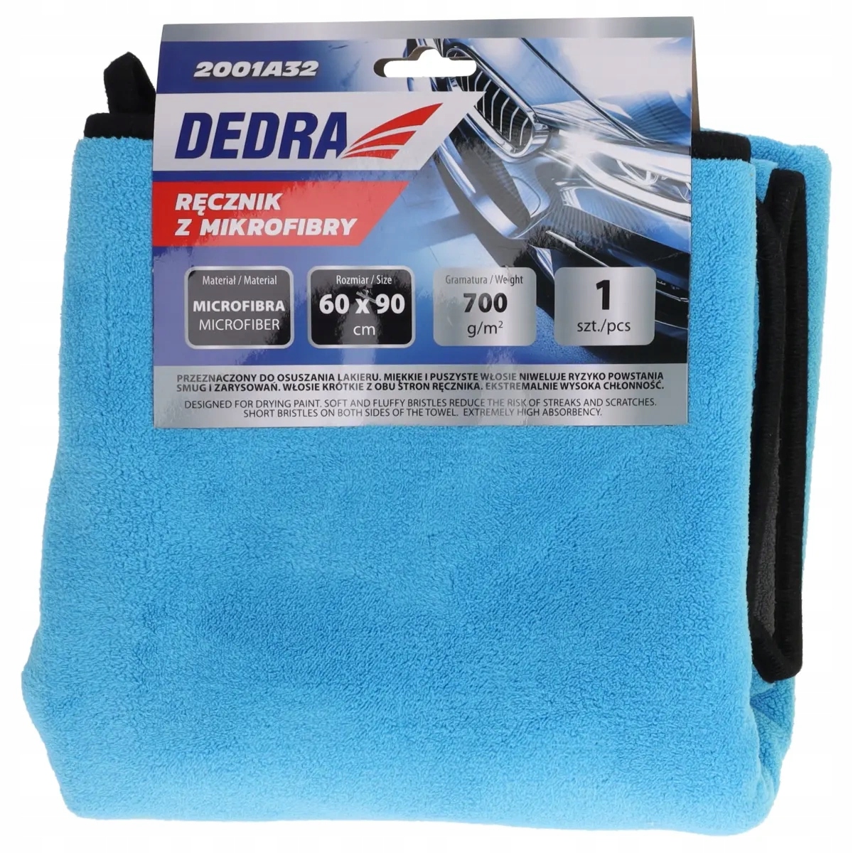 Ręcznik z mikrofibry DEDRA to niezastąpiony pomocnik w pielęgnacji samochodu, idealny do osuszania lakieru, szyb oraz innych powierzchni nadwozia.