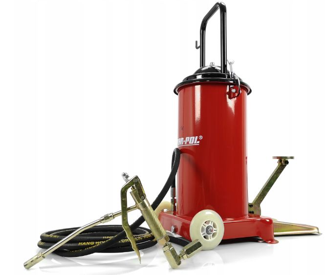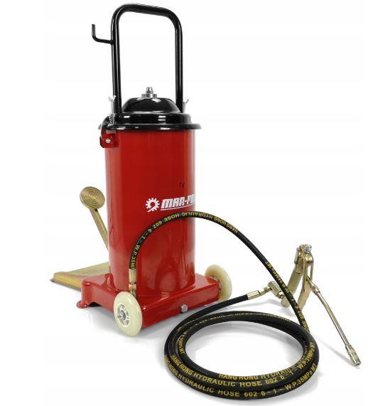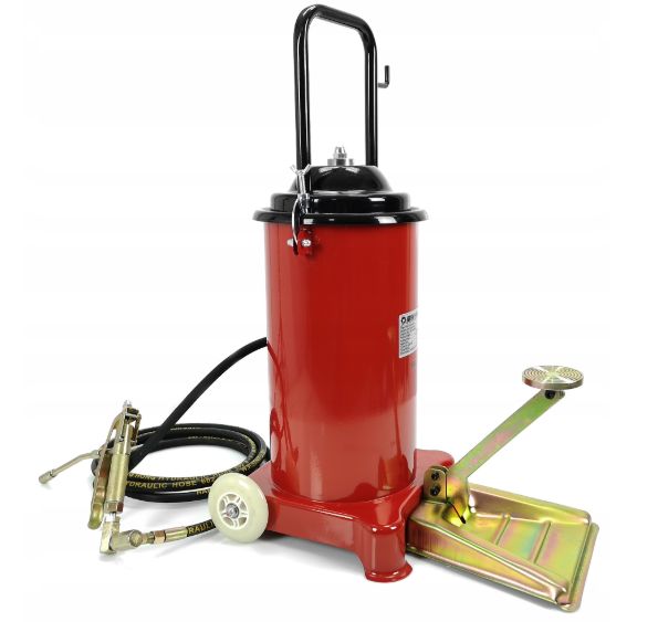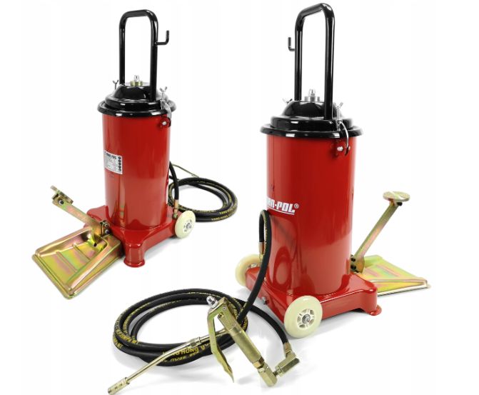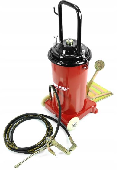 Narzędzie przeznaczone do smarowania maszyn i urządzeń posiadających system smarowania w postaci kalamitek . Wysoka jakość, standardowe uniwersalne końcówki. Urządzenie znajduje zastosowanie w rolnictwie, przemyśle a także w warsztatach samochodowych. Kółka jezdne ułatwiają poruszanie się z narzędziem.