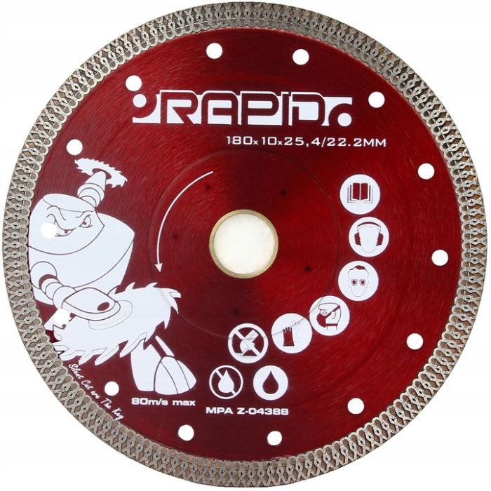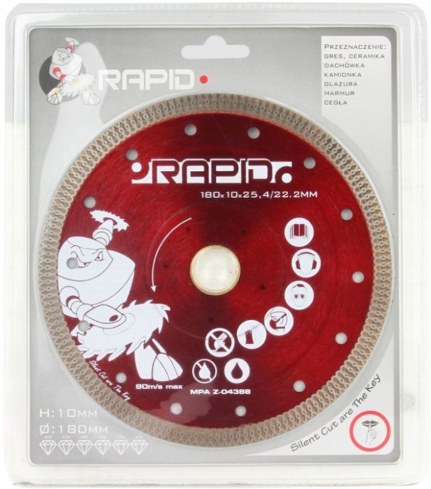 Tarcza zalecana do cięcia twardych materiałów: granitu, gresu rustykalnego, klinkieru, materiałów ogniotrwałych, łupków i gresu porcelanowego, konglomeraty kwarcowe.